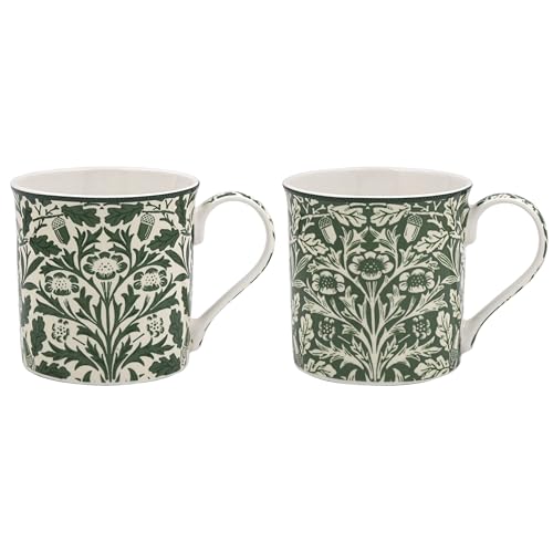 The Leonardo Collection William Morris Acorn Mugs Set 2 300ml for Coffee, Tea and Hot Drinks | Reusable Fine China Tea & Coffee Mugs for Daily Use | Special Occation & Birthday Gifts for Women & Men