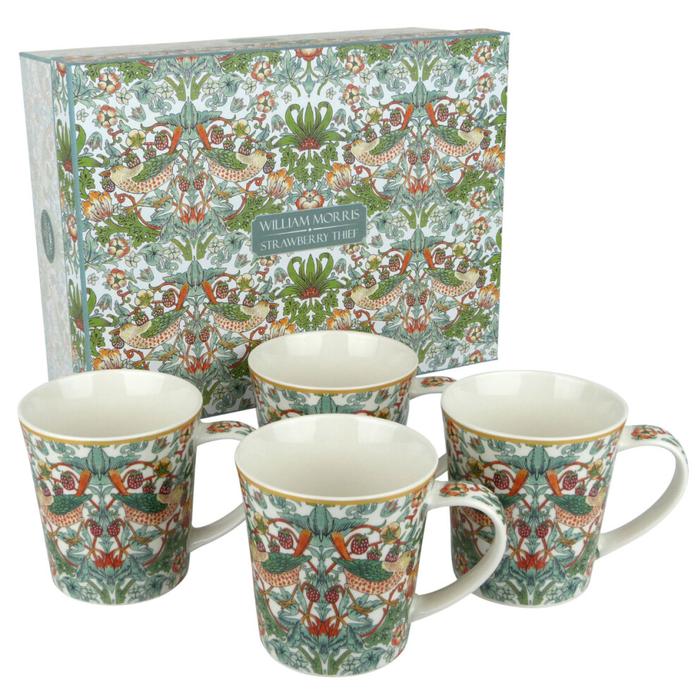 Strawberry Thief Ceramic Mugs Set of 4 - William Morris Artwork Gifts