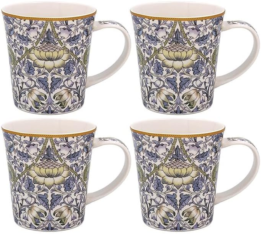 The Leonardo Collection Lodden Mugs Set of 4 William Morris, Tea and Coffee Mugs for Hot Drinks | Fine China Printed Mugs for Kitchen & Home | Reusable Ceramic Cups for Every Occasion