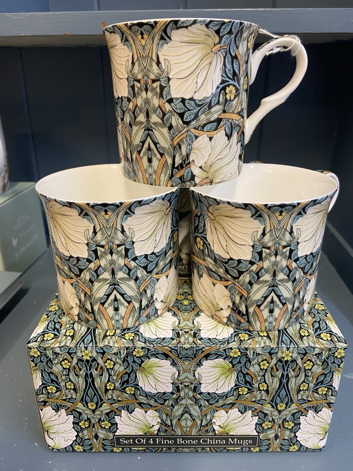 William Morris Blue Pimpernel Design Mugs Set of 4 Bone China Designs Boxed Mug