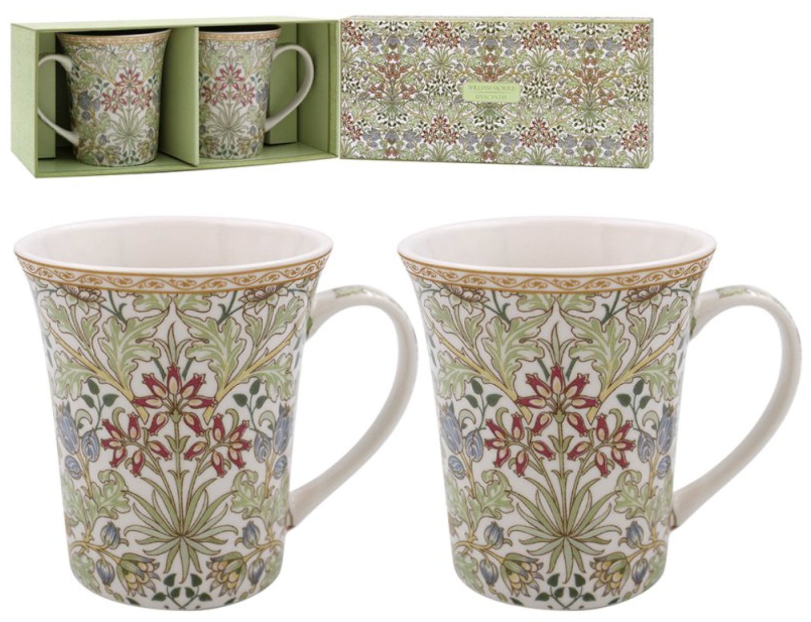 2 CHINA MUGS William Morris Hyacinth Floral GIFT BOXED PRESENT MUG COFFEE TEA
