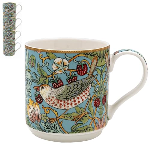 Lesser & Pavey S Berry Thief Stacking Mugs Set of 4 | Ceramic Coffee Mugs Set for Home or Work | Premium Design Mugs Set for All Occasions | Lovely Mugs for Tea, Coffee & Hot Drinks - William Morris