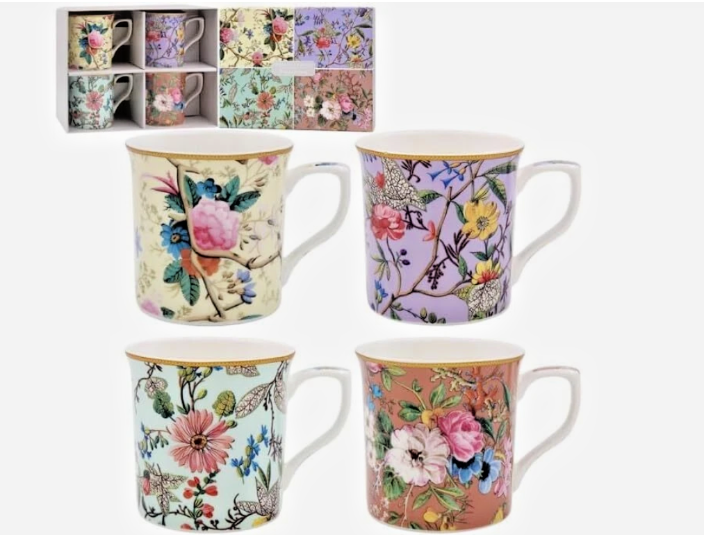 William Morris Floral Mug Set of 4 Fine China Tea & Coffee Mugs Eid Gift