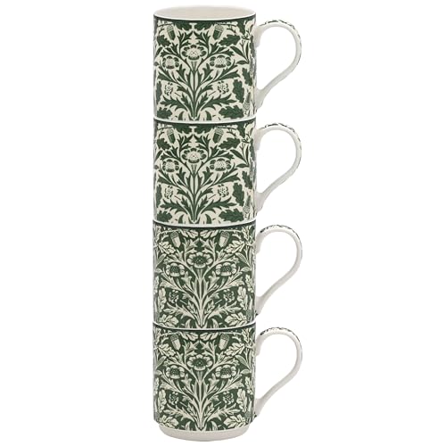 The Leonardo Collection William Morris Acorn Stacking Mugs Set 4 300ml for Coffee, Tea and Hot Drinks | Fine China Coffee Mugs for Daily Use | Practical Drinkware Gifts for Women & Men