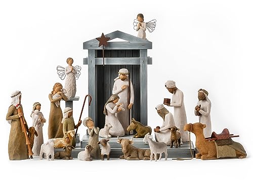Willow Tree Nativity Premier Plus Shepherds, Animals and Angels, 24-Piece Sculpted Figure Set