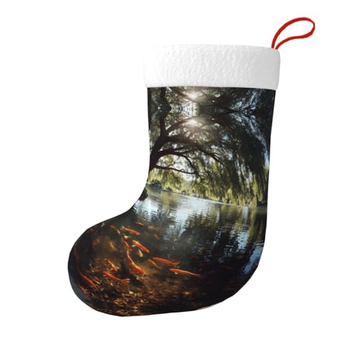 Christmas Decorative Stockings WHJSHOP Goldfish Under The Willow Tree Pattern for Christmas Holiday Party