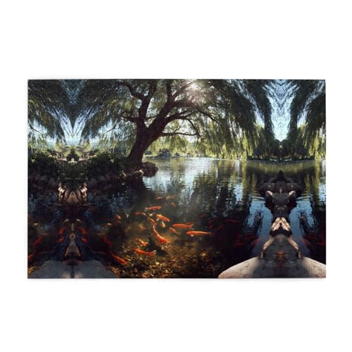 Jigsaw Puzzles1000 Piece Whjshop Goldfish Under The Willow Tree Prints Educational Intellectual Wooden Puzzles, Fun Puzzles, Stress Relieving Puzzles