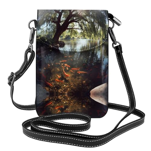 GGNKDL Goldfish under the willow tree printing Crossbody bag, mobile phone bag, women's small wallet, a practical gift suitable for going out, exercising, and shopping