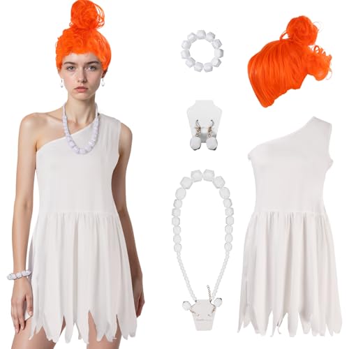 AOBUTE Women's Halloween Costume White One Shoulder Adult Wilma Dress Cosplay Outfit XXL