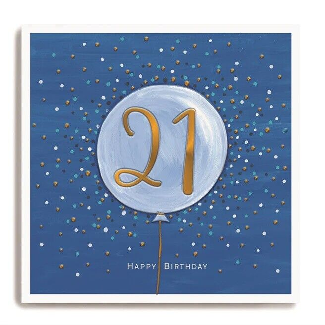 Large Blue Balloon 21st Birthday Card - Janie Wilson Illustrated Foil Design