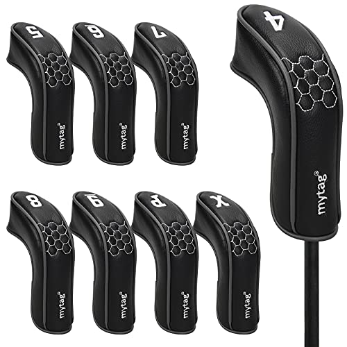 mytag 8PCS Golf Hybrid Iron Headcovers Set Long Hybrid Iron Covers for Cleveland Launcher, Majek MX4, Cobra T Rail, Wilson Launch Pad, Tour Edge (1set of 8pcs(4,5,6,7,8,9,P,X))