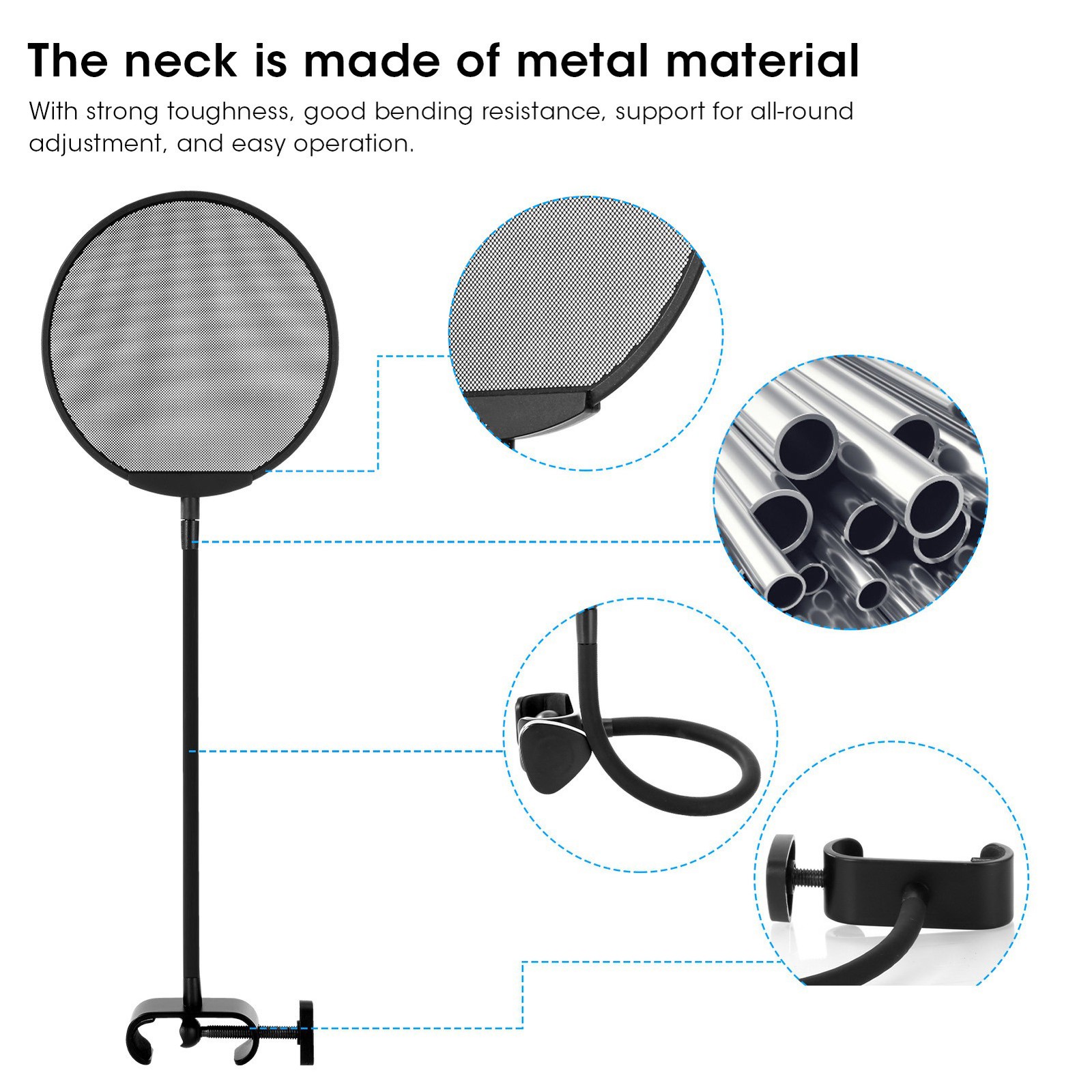 Lazmin112 Microphone Pop Filter, Round Shape Wind Pop Filter Anti-Spray Mesh Double-Layer Mic Mask Shield Adjustable Filter with Tripod Holder