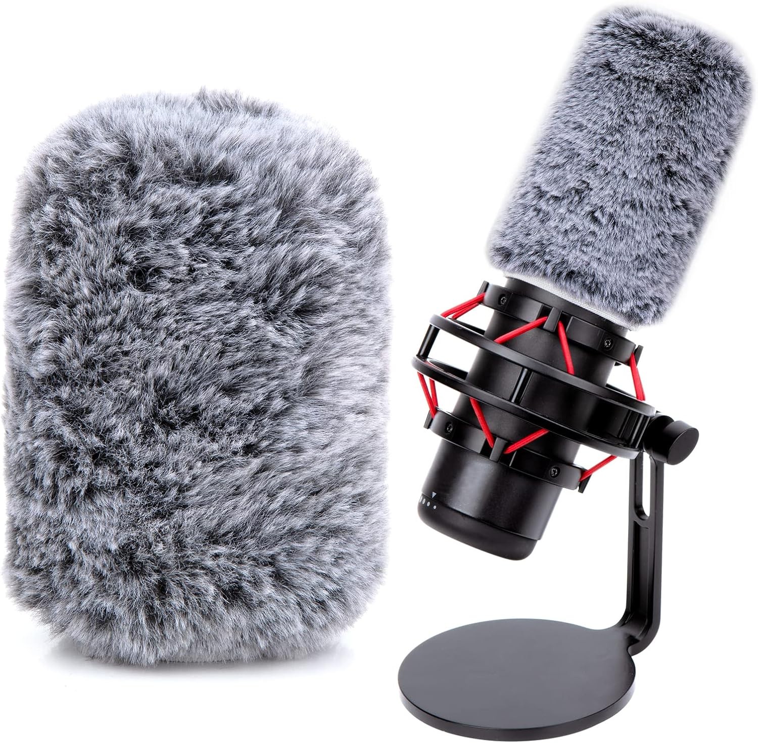 SUNMON Microphone Windscreen Compatible with HyperX QuadCast & QuadCast S - Furry Wind Muff & Foam Pop Filter Cover for Noise Reduction, Audio Improvement (2 Pack)