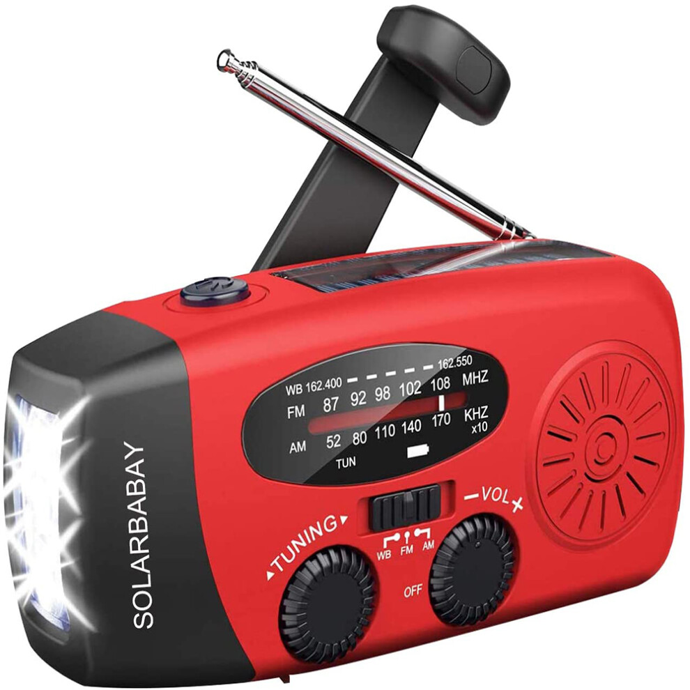5000mAh Wind Up Solar Radio, Emergency Crank Weather Radio, Solar Radio with Torch, NOAA/FM/AM Solar Radios, Portable Survival Radio with SOS, USB Mo