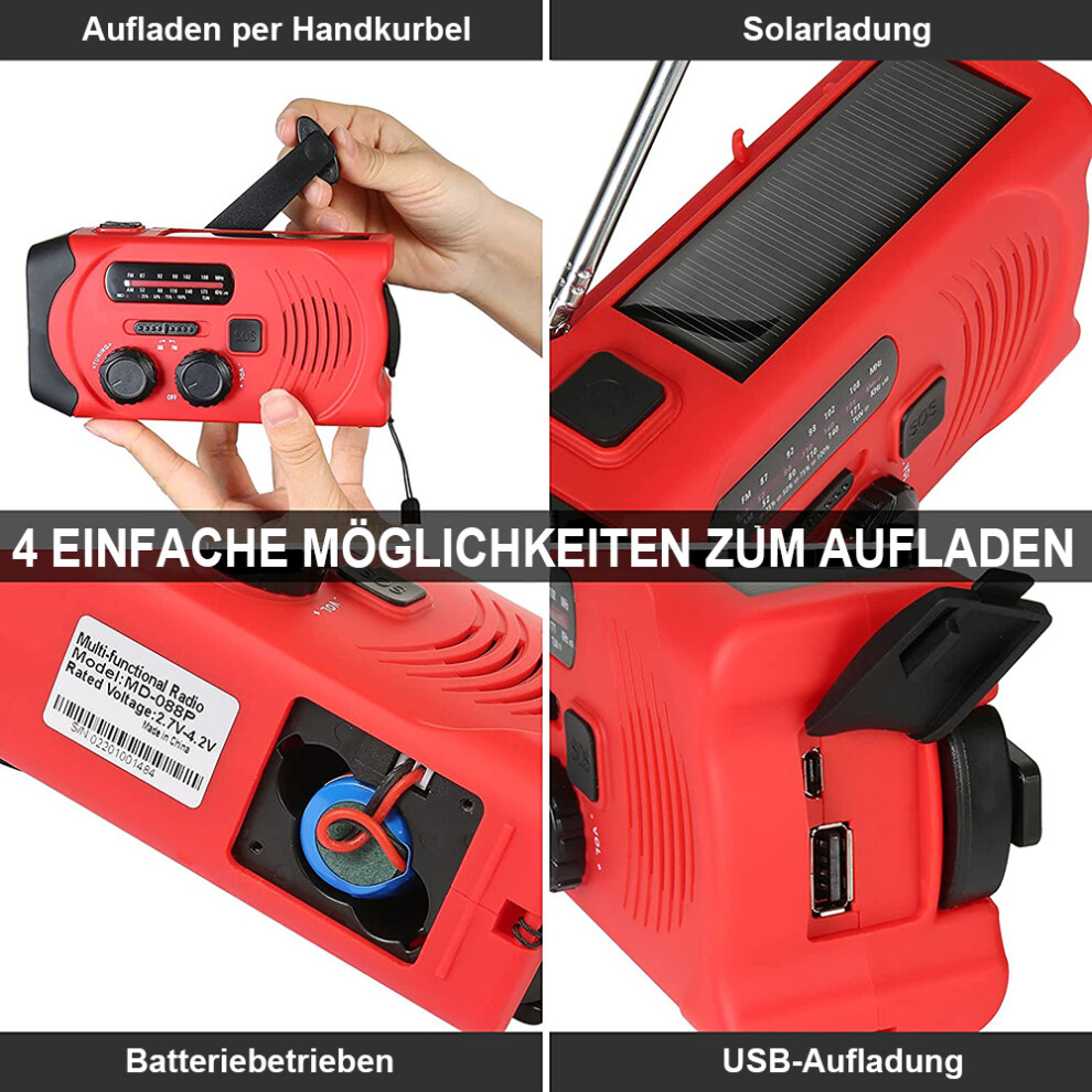 Self Powered Crank Radio for Outdoor Adventures, Wind up Survival Radios Emergency Solar Weather Radio, 2000mAh Power Bank Portable Emergency Kit,