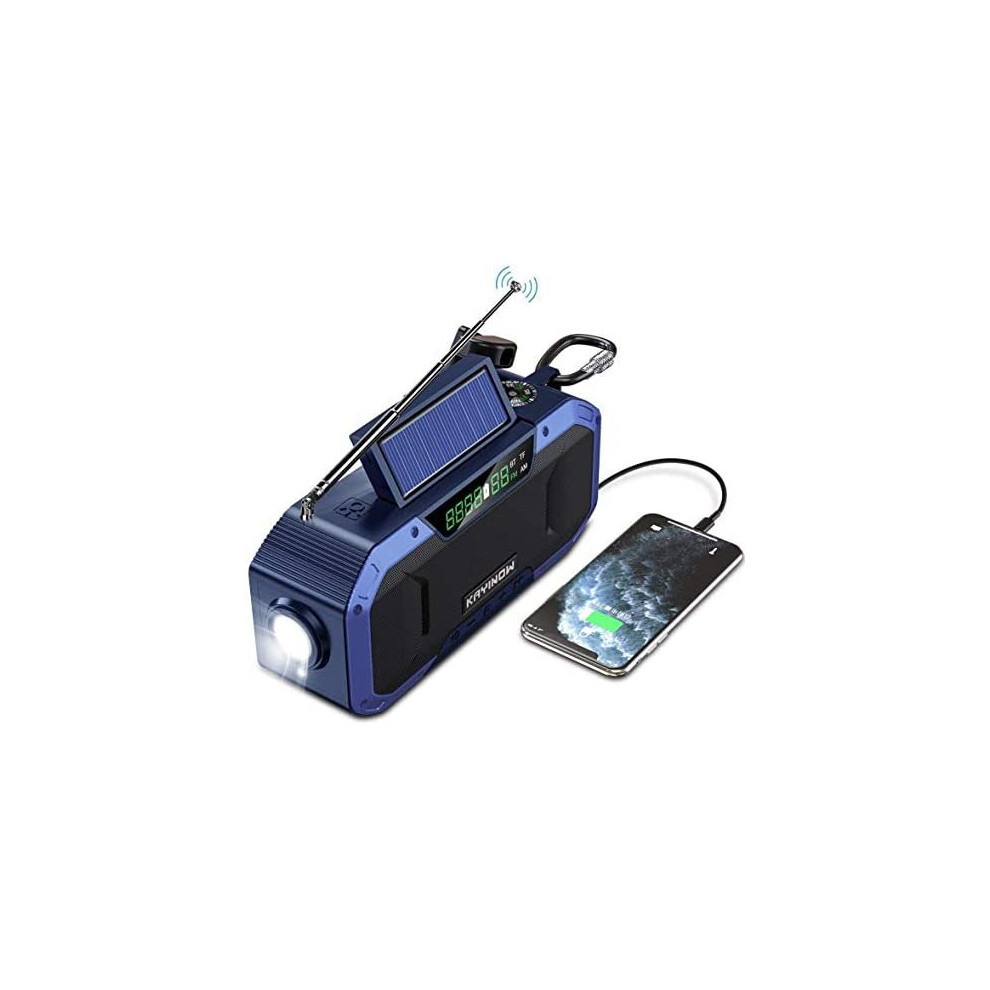 Portable Bluetooth Speaker w/Wind Up Radios AM FM - 5000mAh IPX6 Waterproof Emergency Hand Crank Weather Radio, Solar Dynamo Radio w/LED Torch Li