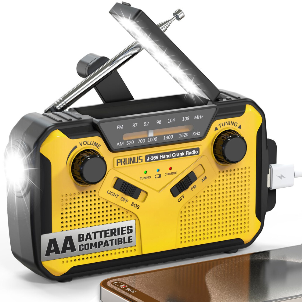 Wind Up Radio, PRUNUS J-369 Survival Equipment, AM/FM Portable Radios, Battery Radio with 3000mAh Power Bank, Solar Radios with Torch, Reading Lamp a