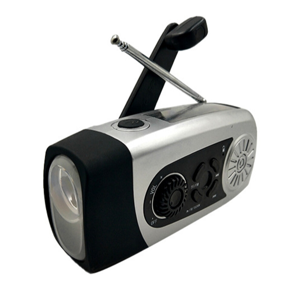 Battery Operated Power Bank For Smartphone, Wind Up Survival Radios With 3 Led Super Bright Flashlight Emergency Solar Weather Radio