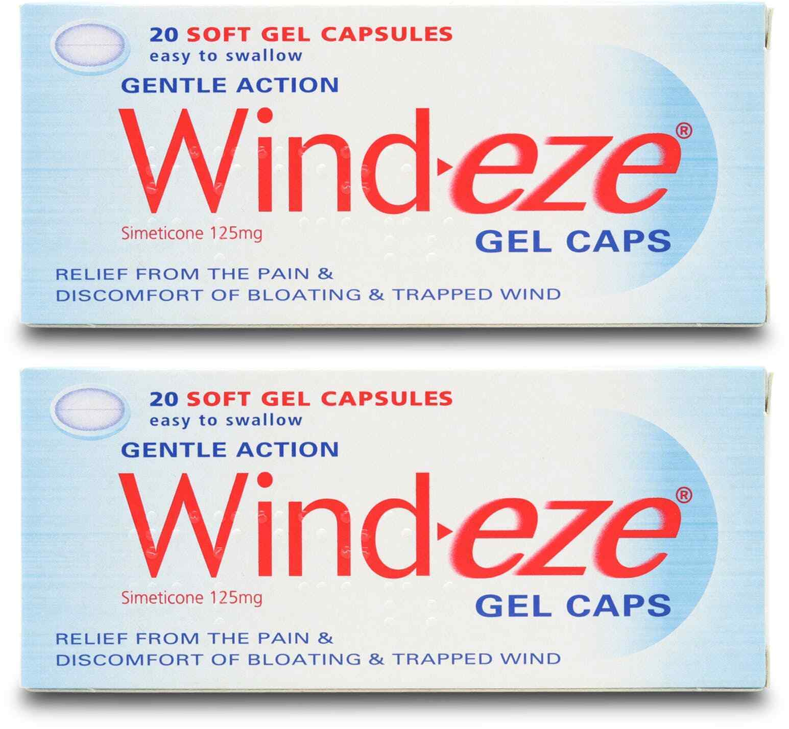 Wind-eze Gel Caps - 2 x 20 Capsules - Pain, Trapped Wind, Bloating, WindEze ease