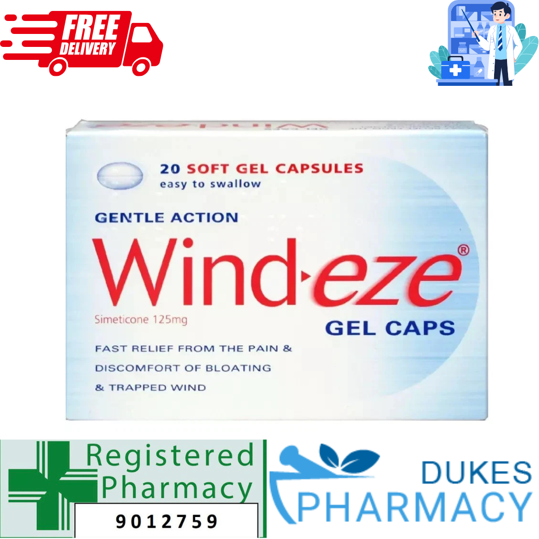 Wind-eze Gel Caps 1 x 20 Capsules for Pain | Trapped Wind | Bloating..