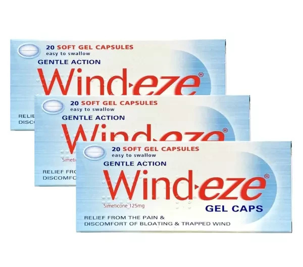 3x Wind-eze Simeticone - Relief from Trapped Wind, Bloating 20 Soft Gel Capsules