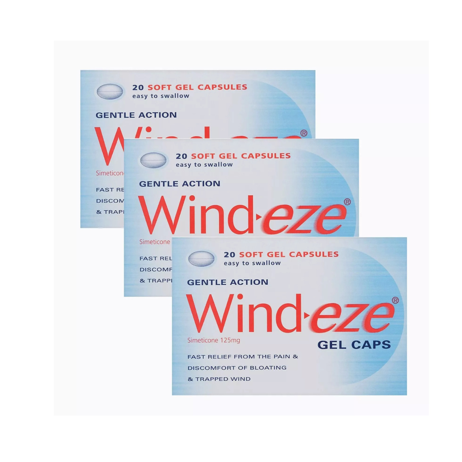 3x Wind-Eze Simeticone 20 Soft Gel Capsules 125mg - For Trapped Wind & Bloating