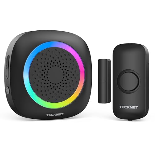 TECKNET Wireless Door and Window Open Sensor Alarm Chime, 1000Ft Operating Range 61 Chimes Adjustable Volume with Mute Mode RGB Indicators Door Open Alert-Black