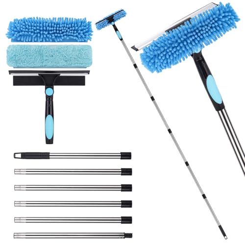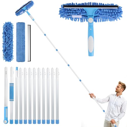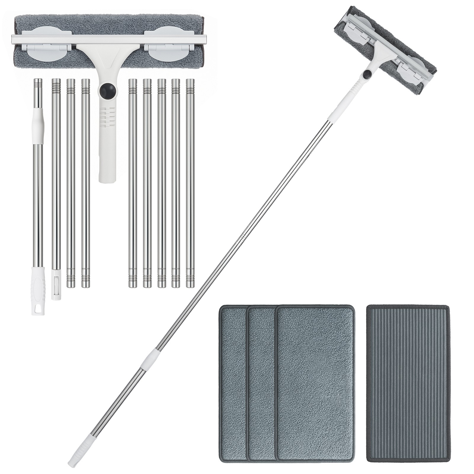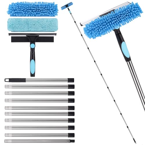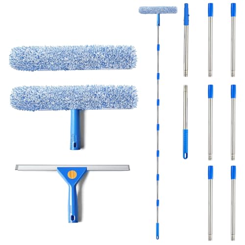 10Ft (3m) Window Cleaning Equipment, Window Cleaner Kit with Extension Pole, Window Squeegee & Microfiber Scrubber Washing Kit for High Windows, Shower Glass, Car, RV