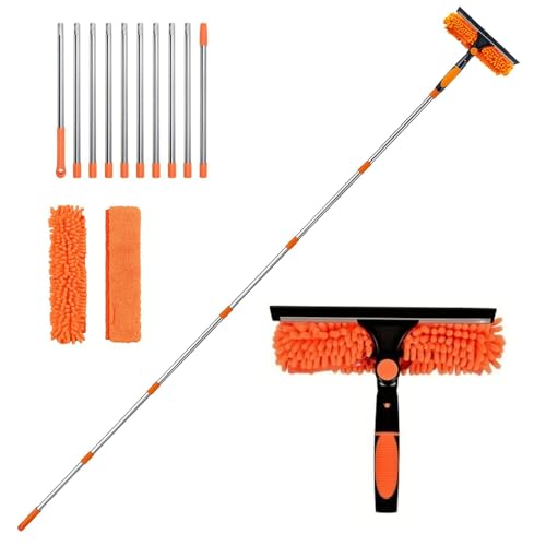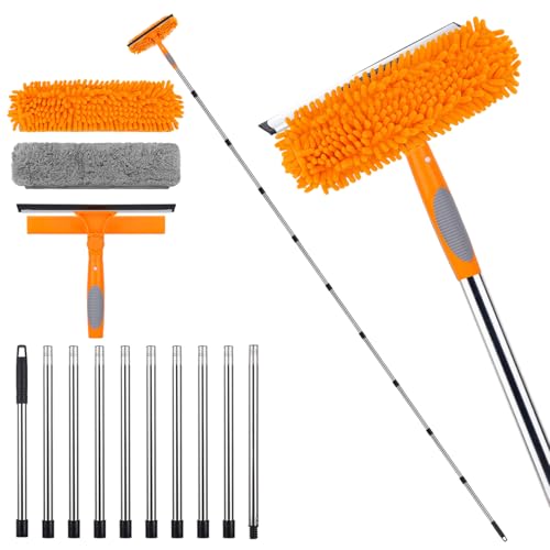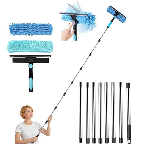 ZONJIE Window Cleaner with Long Handle 2in1 Window Cleaning Kit with 9 Extension Pole, Extra Long Cleaner Equipment, Professional Window Squeegee Glass Cleaning Tool
