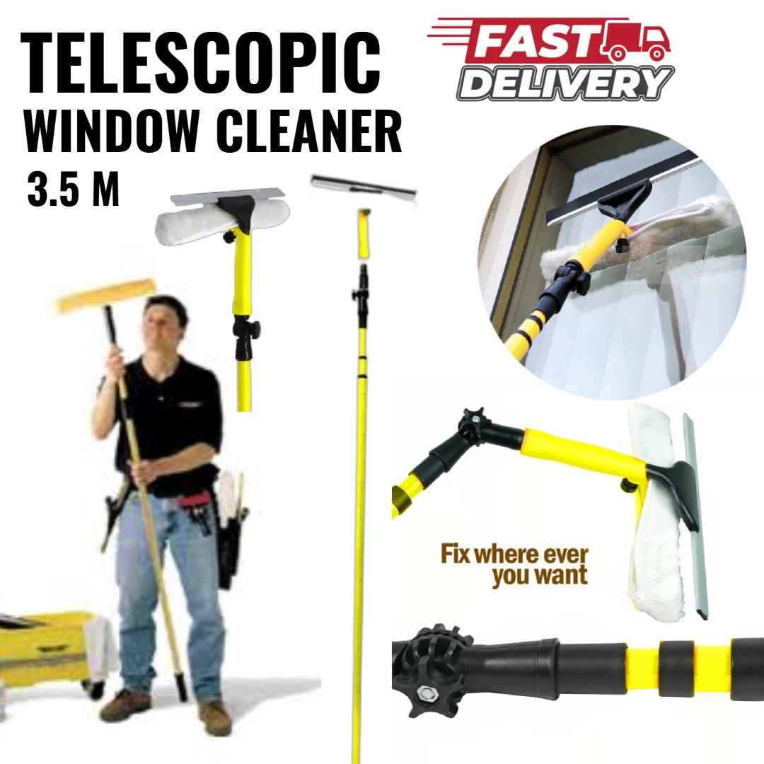 Multi-Purpose 3.5M Telescopic Window Cleaner Kit Conservatory Equipment Glass Cleaning Squeegee Extendable Aluminium Metal Pole Soft Rubber Mop Head