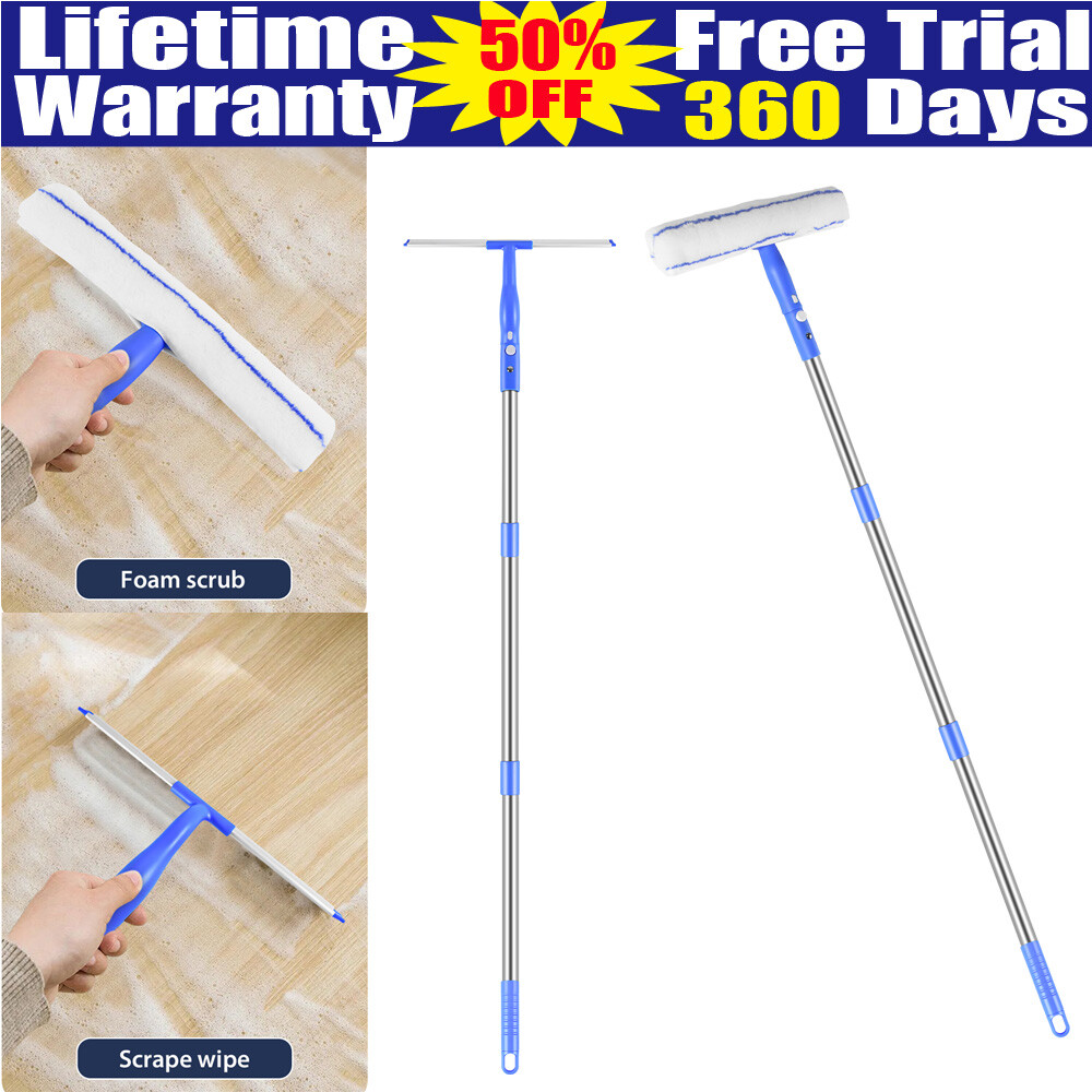 3.8m Window Cleaning Equipment Cleaner Tool with Long Extendable Pole, 35cm Scrubber(3 Replaceable Sleeves), 3 Squeegees(35cm *2 & 25cm *1), Ideal
