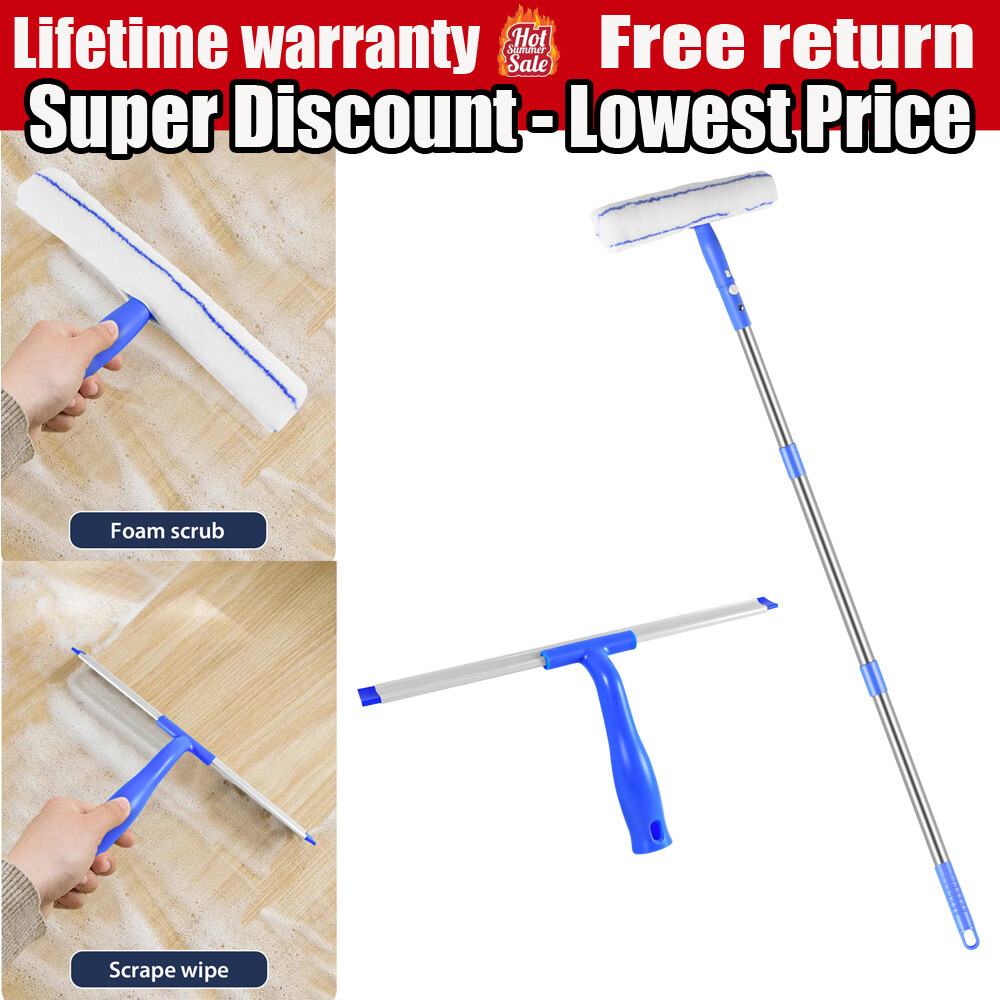 Professional Window Squeegee Cleaner, Glass Dust High-Rise Window Cleaning Brush, Telescopic Pole, Window Cleaner Glass Extending Handle Wash Cleaning Tool Kit, 2 in 1 Sponge Squeegee Equipment