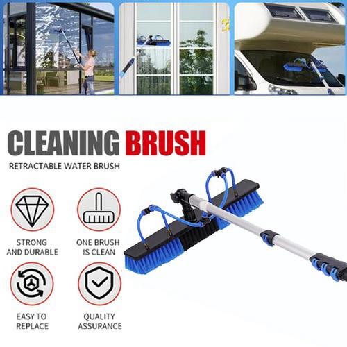 QmEna Window Cleaning Brush Extendable Telescopic,Water Fed Window Cleaning Pole Aluminium,Cleaner For Solar Panels,With Water Hose System For Vehicle & Home Cleaning 7.2M