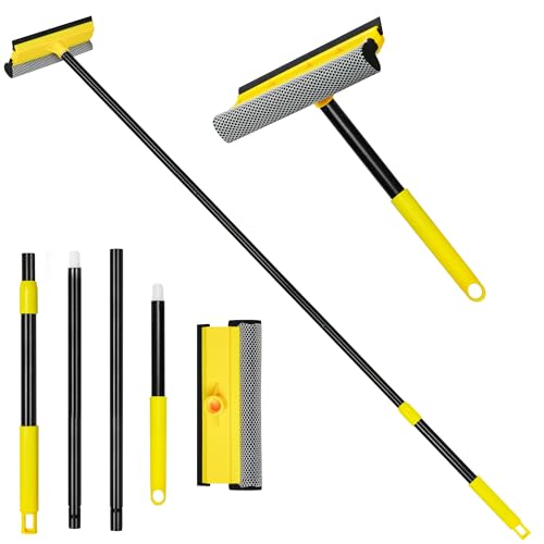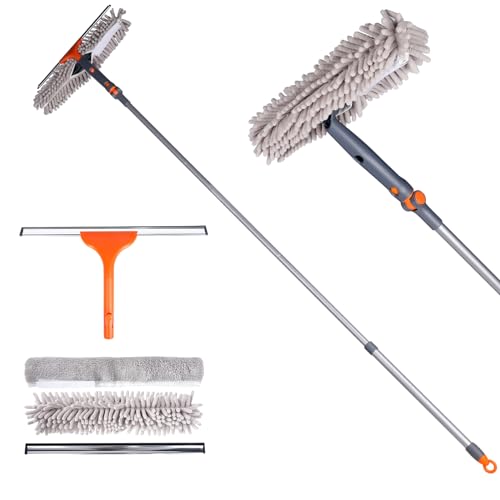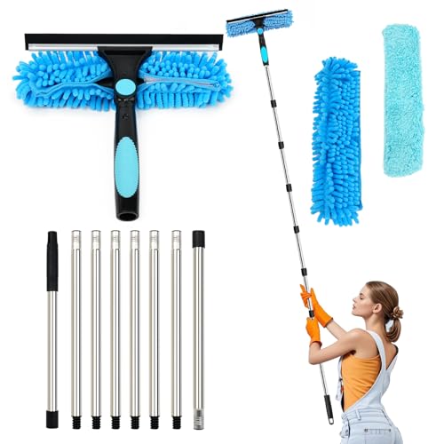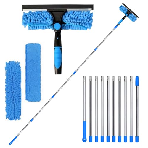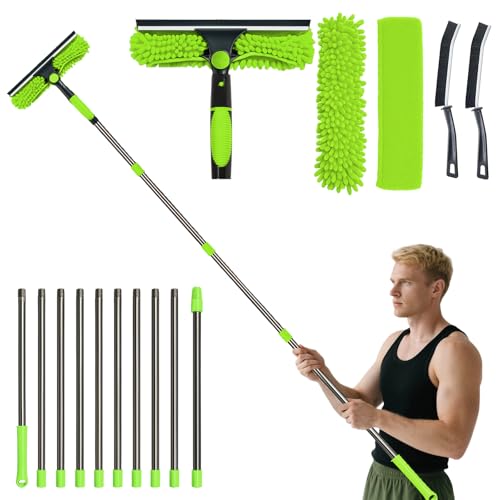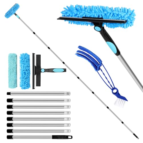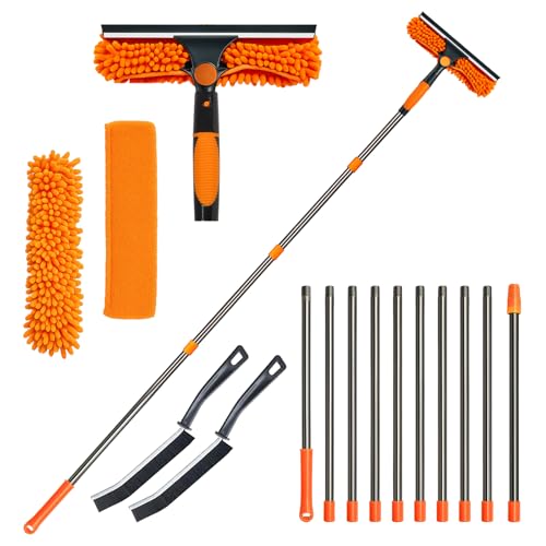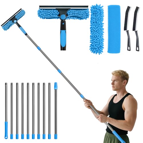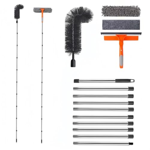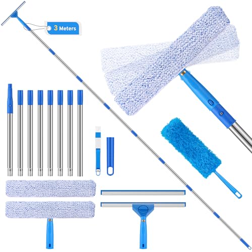 10Ft (3m) Window Cleaning Equipment, Window Cleaner Kit with Extension Pole, Window Squeegee & Microfiber Scrubber Washing Kit for High Windows, Shower Glass, Car, RV