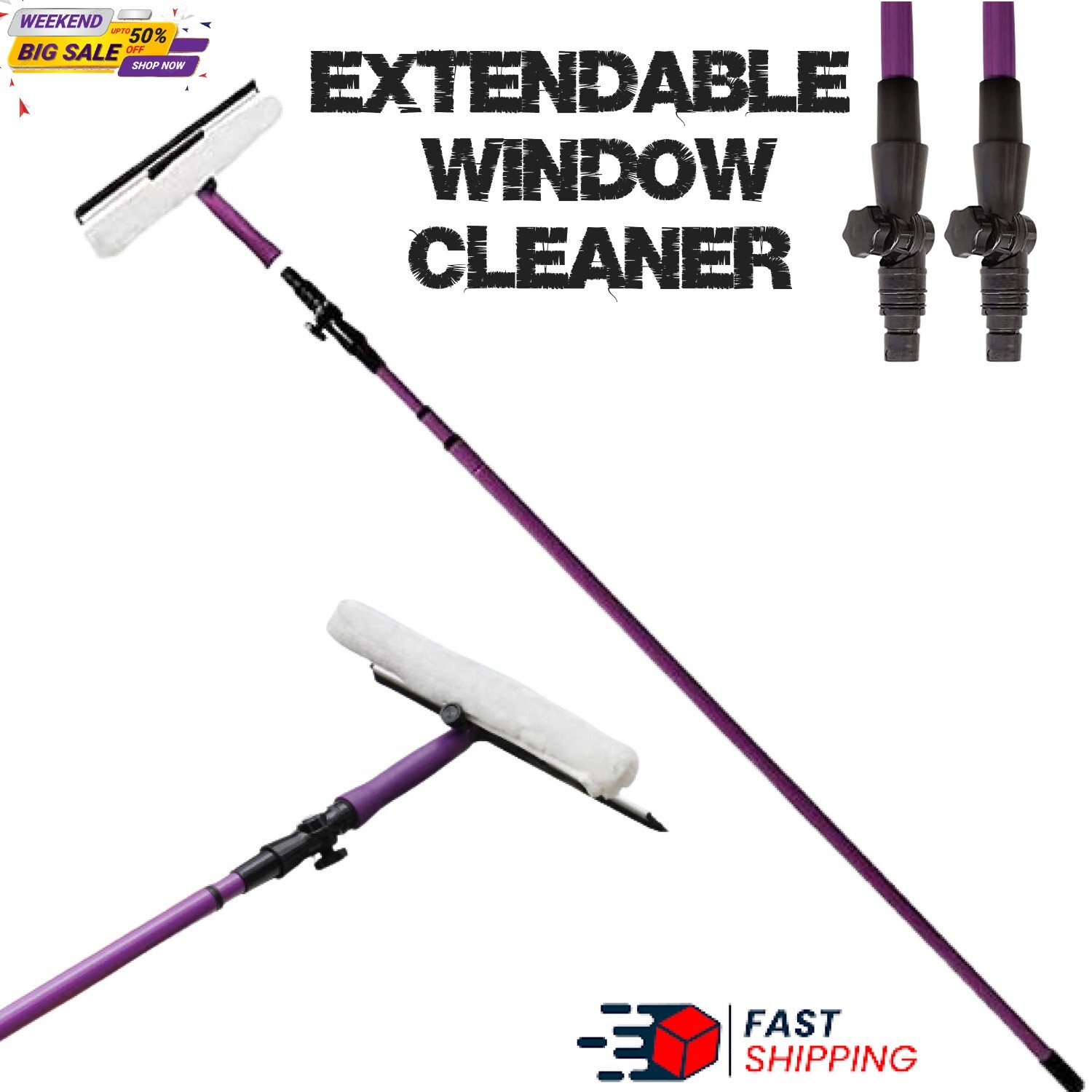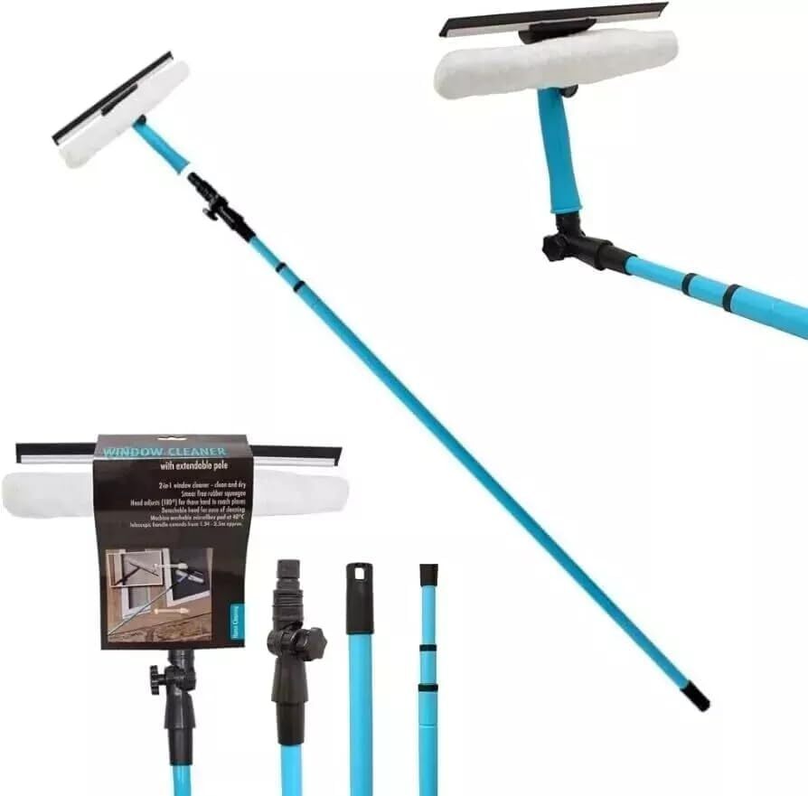 EXTENDABLE WINDOW CLEANER POLE BRUSH SPONGE SQUEEGEE LIGHTWEIGHT TELESCOPIC