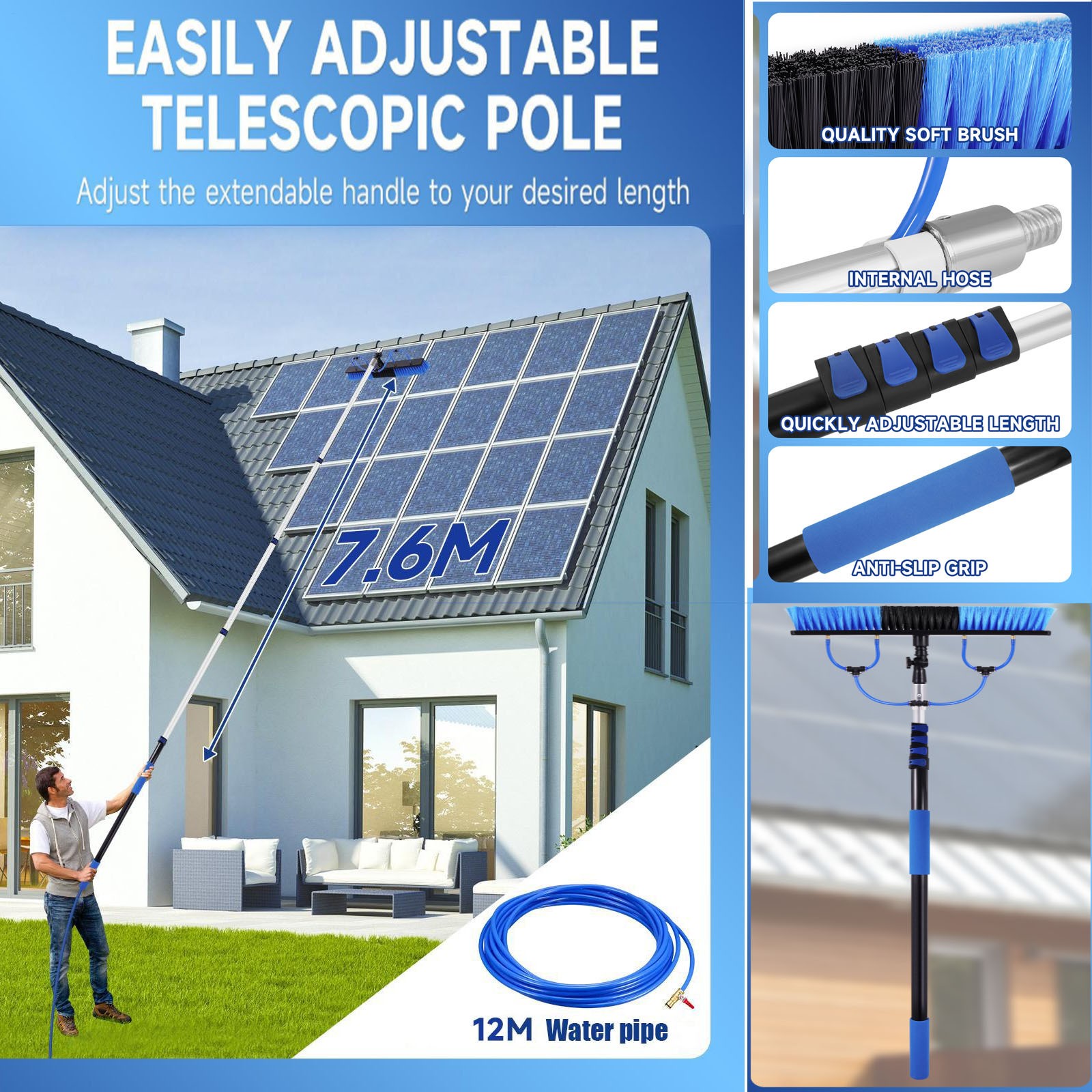 QmEna cleaner for solar panels brush,Window Cleaning Pole,Water Fed Telescopic Brush,Extendable Cleaner Conservatory Roof,for Solar Panels, Windows, Roofs & Cars 35cm,7.2m/24ft