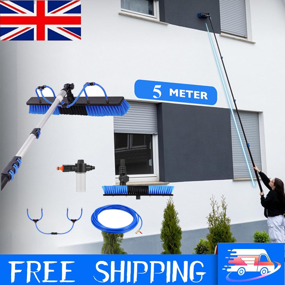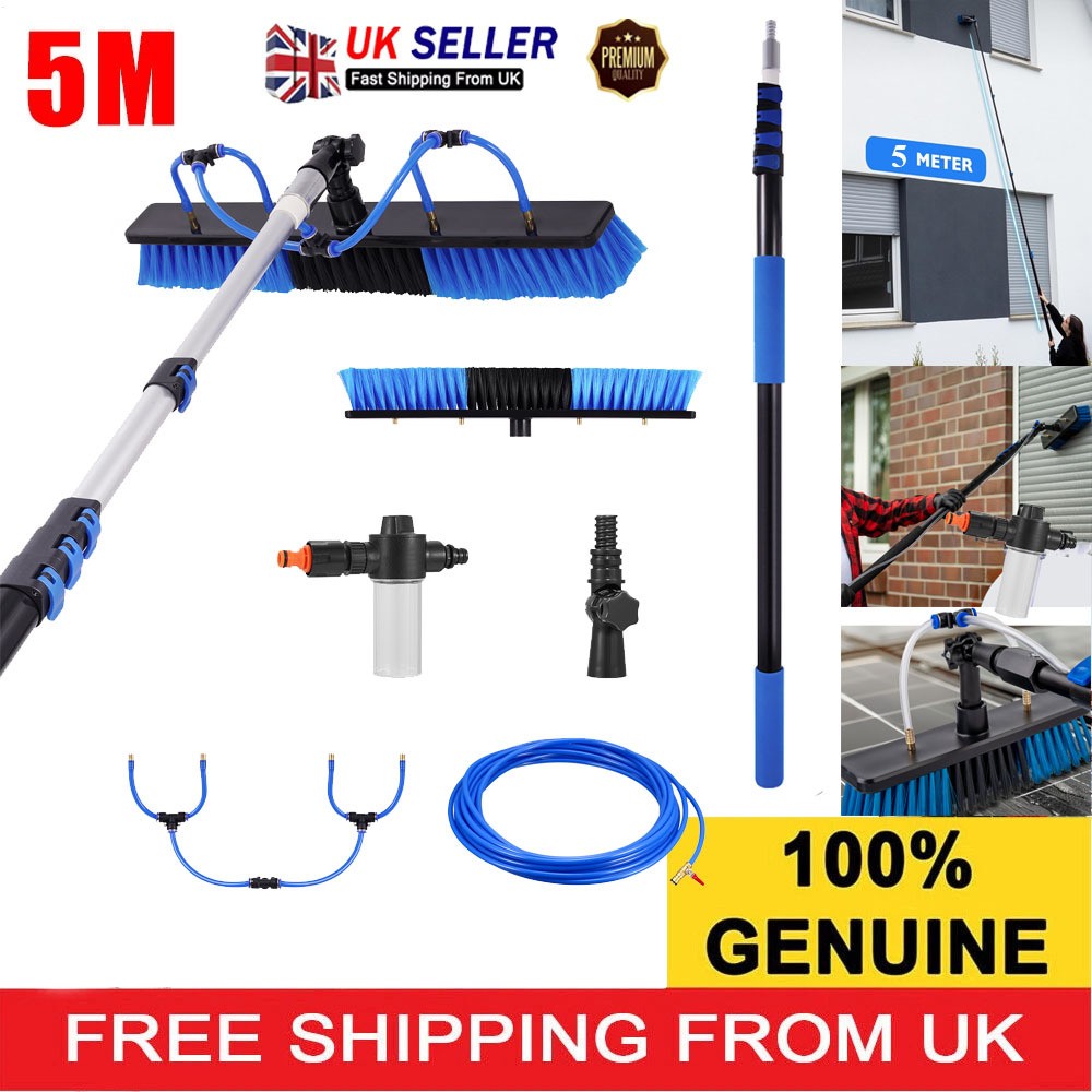 16.4FT WATER FED WINDOW CLEANING POLE CLEANER EQUIPMENT EXTENSION BRUSH KIT UK