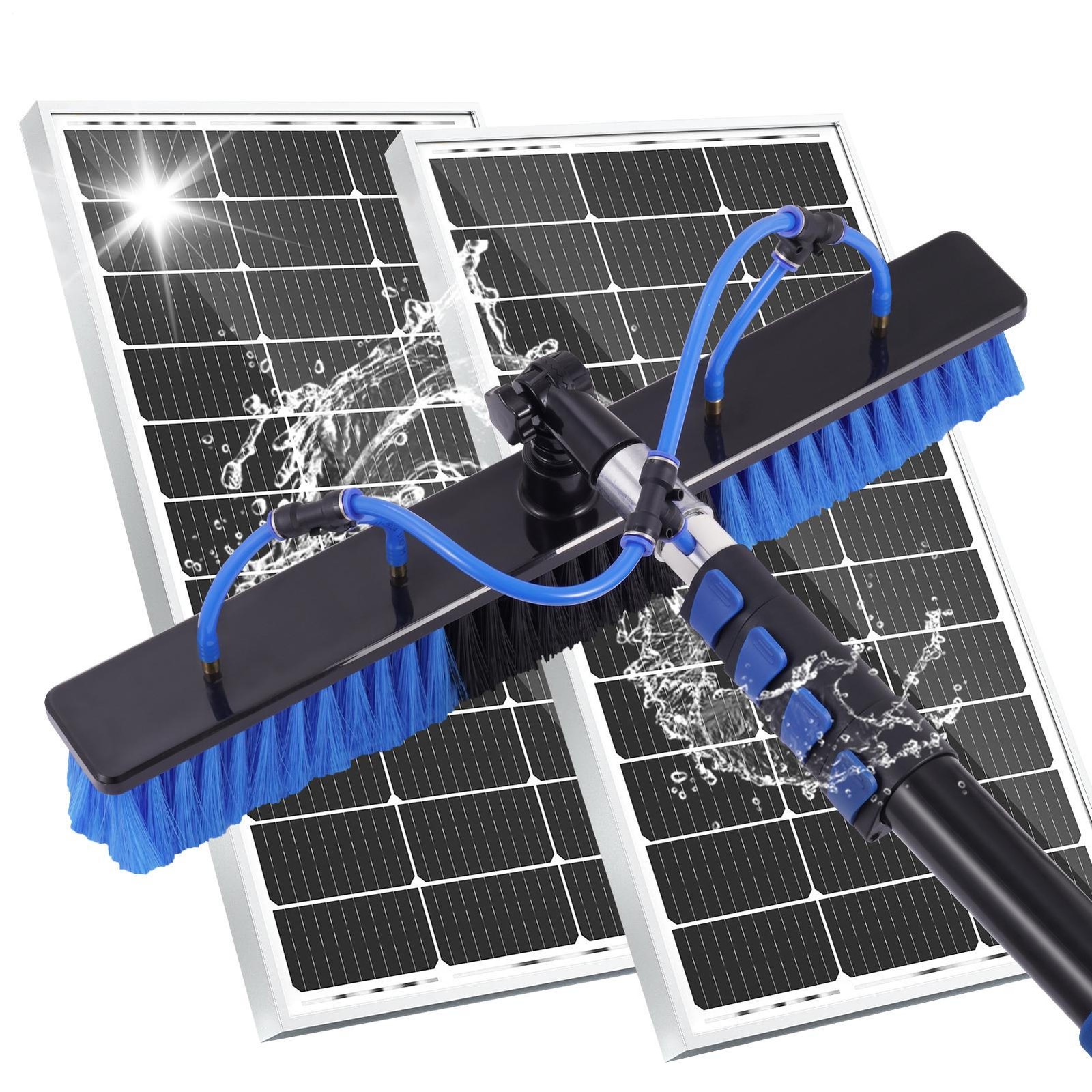 Water Fed Pole Kit Window Cleaning Poles, Water Fed Brush, Outdoor Window Cleaner Extendable Telescopic Pole Water Fed Brush Spray Washer for Solar Panel Brush(30cm Brush Head,20FT)