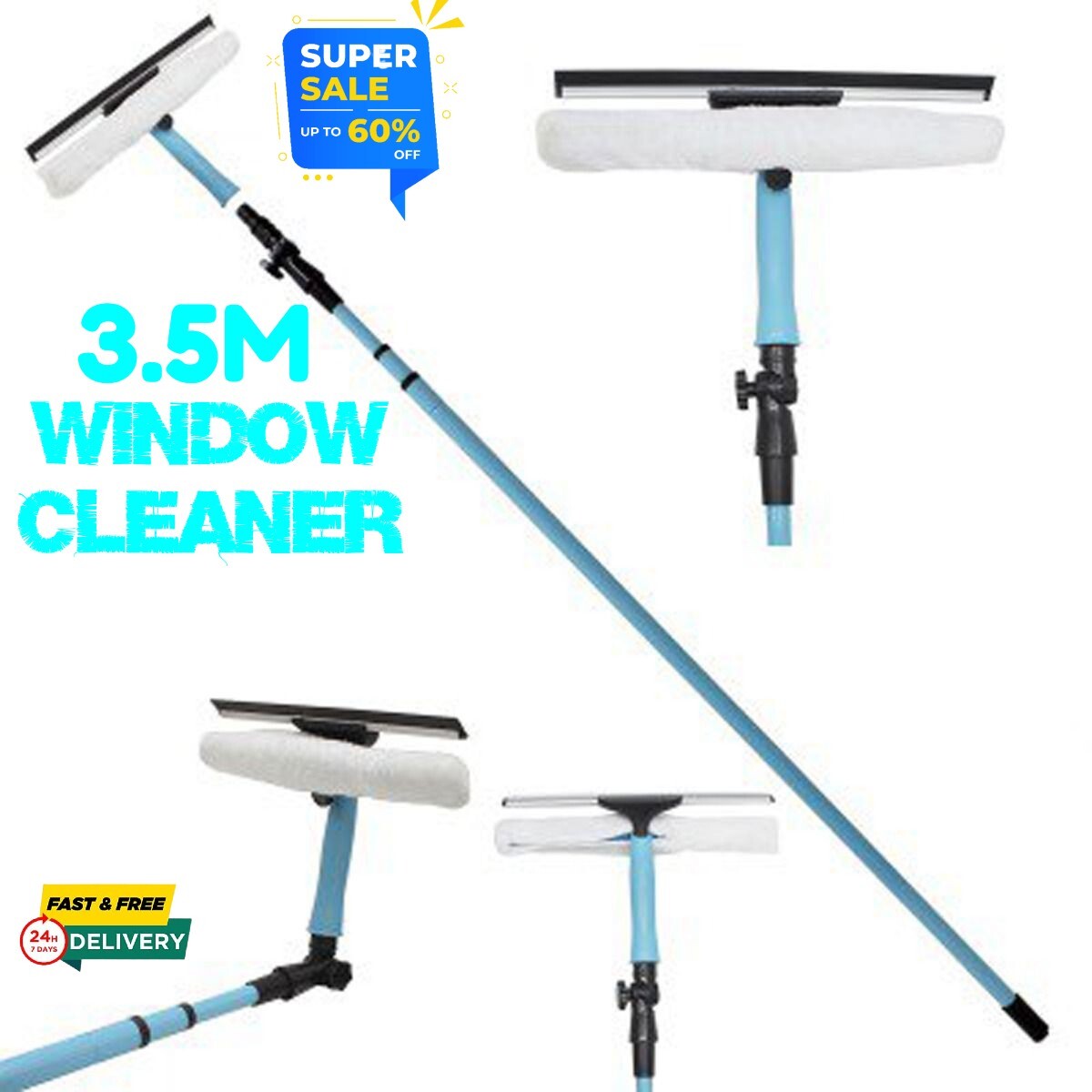 3.5m Extendable Window Cleaner Pole with Removable Squeegee for Glass Washing