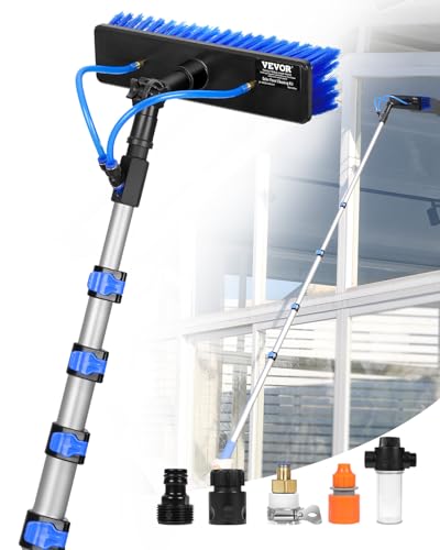 VEVOR Water Fed Pole Kit, 7.3m Solar Panel Cleaning Pole with Extendable Handle, 180° Rotatable Brush Head & 20m Hose, Household & Outdoor Window Cleaner Tool for Caravan Solar Panel Deck