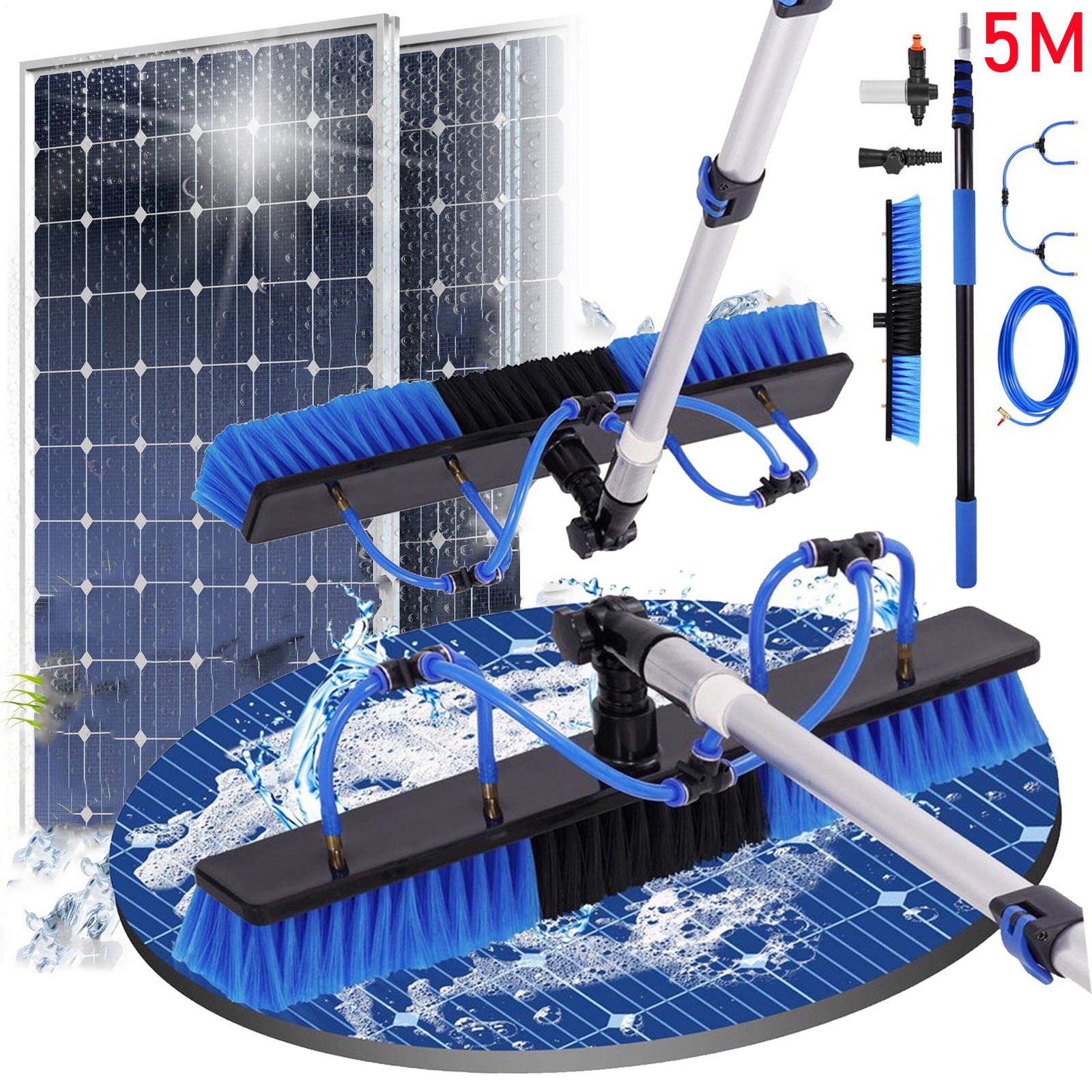 QmEna cleaner for solar panels brush,Window Cleaning Pole,Water Fed Telescopic Brush,Extendable Cleaner Conservatory Roof,for Solar Panels, Windows, Roofs & Cars 35cm,6m/20ft