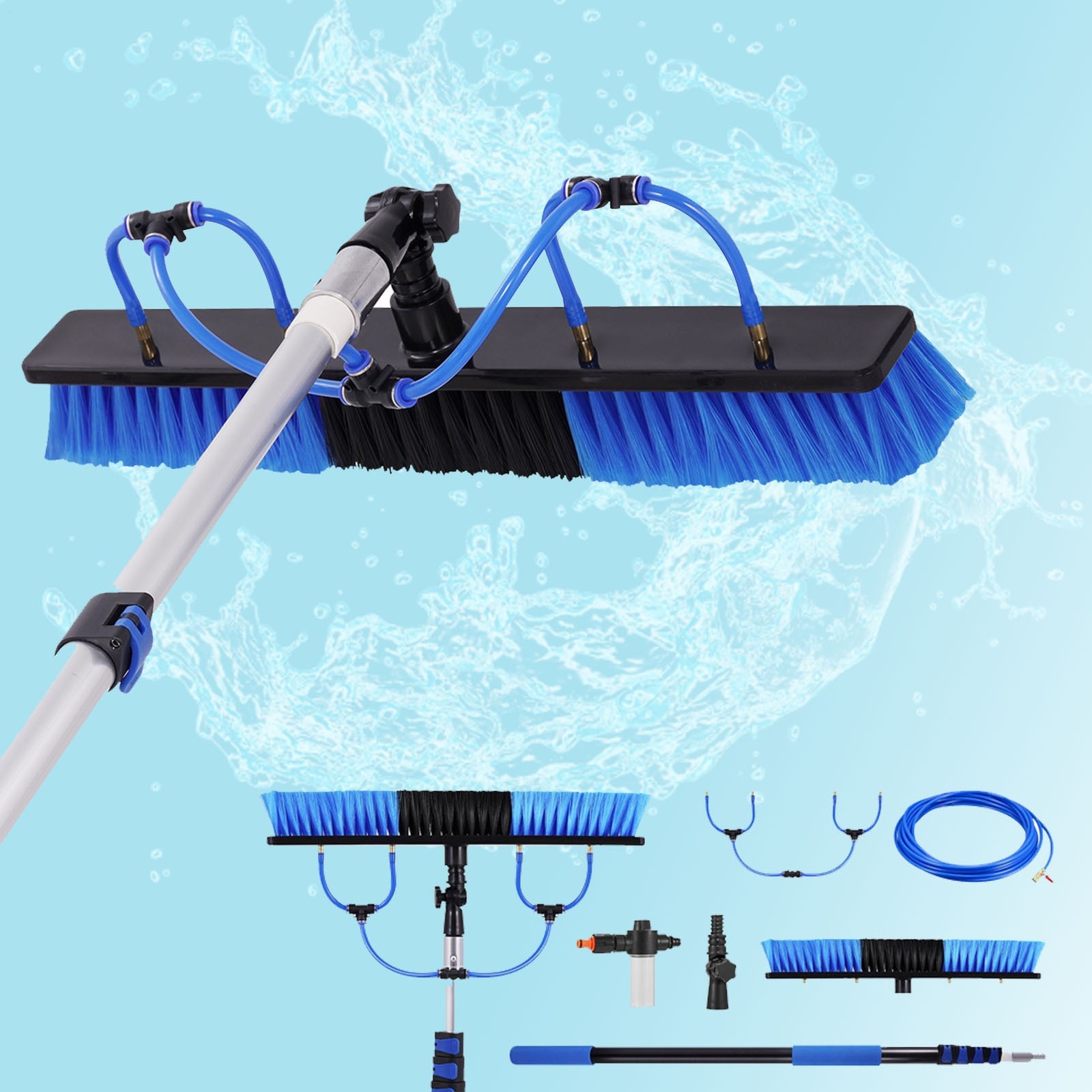 16.4FT WATER FED WINDOW CLEANING POLE CLEANER EQUIPMENT EXTENSION BRUSH KIT