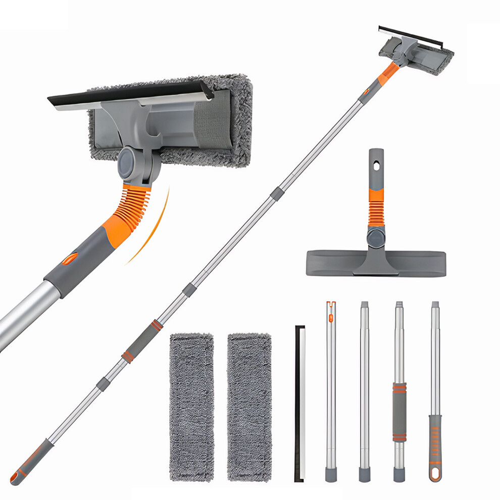 Bendable 2-in-1 Window Squeegee Cleaner Extendable Pole For