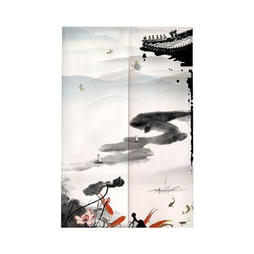 Surwin Chinese Style Japanese Noren Doorway Curtain Cotton Linen Door Curtain Window Treatment Tapestry for Decorative Bistro Kitchen Partition Shading Home (90x200cm,Natural landscape)