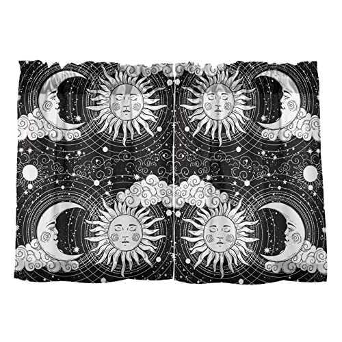 Universe, Crescent Moon and Sun with Moon Astrology Divination, Magic Set of 2 Window Kitchen Curtain, Window Curtain Panel, Bathroom Tier Curtain Sets for Home Living Room Bedroom Decor 27x36 in