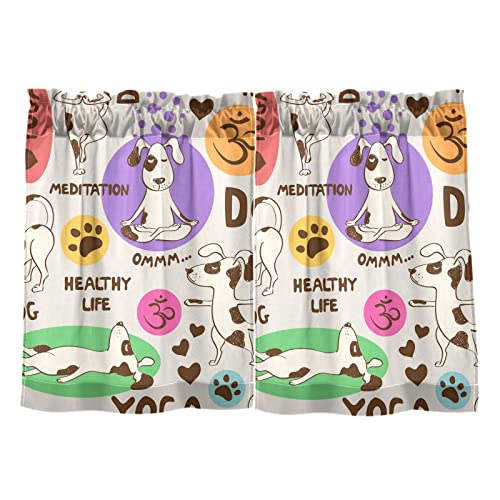 Oyihfvs Colorful Cartoon Dog Yoga Health Vintage Style Set of 2 Window Kitchen Curtain, Window Curtain Panel, Bathroom Tier Curtain Sets for Home Living Room Bedroom Decor 27x36 in
