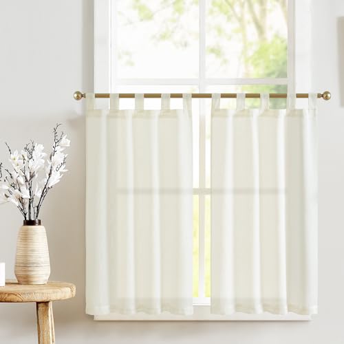 24 Inch Long Tier Curtains for Kitchen, Bathroom Window Curtains Rod Pocket Short Curtains Window Treatment Tiers for Living Room Farmhouse 2 Panels