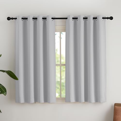 Grey Blackout Curtains Room Darkening Thermal Insulated Grommet top Window Curtains Short Drapes for Living Room, 38 x 36 inch, Gray, 2 Panels