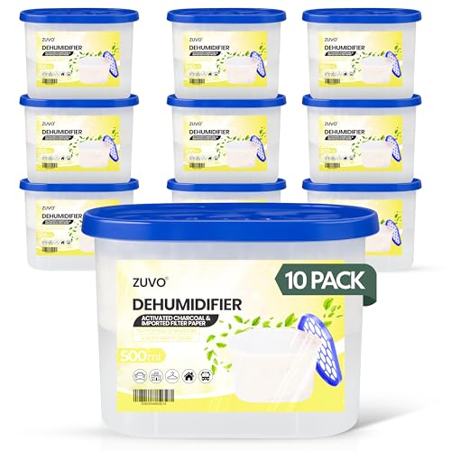 Zuvo Dehumidifier 500ml Pack of 10 | Disposable Moisture Absorber & Damp Trap for Home, Wardrobe, Bathroom | Condensation Absorbers & Humidity Control | Cupboard, Window & Interior Dehumidifiers