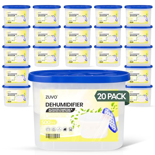 Zuvo Dehumidifier 500ml Pack of 20 | Disposable Moisture Absorber & Damp Trap for Home, Wardrobe, Bathroom | Condensation Absorbers & Humidity Control | Cupboard, Window & Interior Dehumidifiers